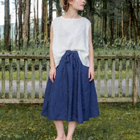 Every wardrobe could use a dependable skirt, and our Pocket Skirt is a flattering and easy to wear option. With gored skirt panels, a gathered elastic waist with a tie, and outside built in pockets, this skirt is an easy choice and will quickly become a warm weather staple.