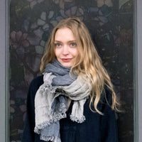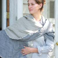 A soft light blue combined with natural undyed linen make a perfect pairing in this 100% Linen Scarf/Wrap. Made from two lightweight layers of contrasting linen that are sewn together, this scarf is both beautiful and functional. A bit more substantial than our Linen Scarf, this piece makes a perfect soft scarf or can be draped around the shoulders as a comfortable wrap.